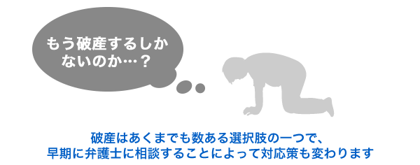 ところでまれに、弁護士はすぐに破産を勧めると言われる方もいらっしゃいますが、破産はあくまでも数ある選択肢の一つであり、全てではありません。